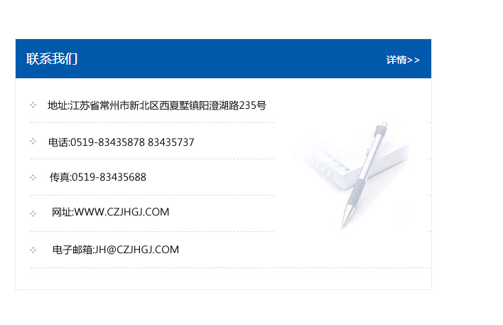 地址:常州市新北區友邦商務大廈1幢16、17層  電話:0519-85101652  傳真:0519-85112595  郵編:213022  網址:www.cz-jiayue_cn.ynainiduo.com  郵箱:xiajifengaa@163.com